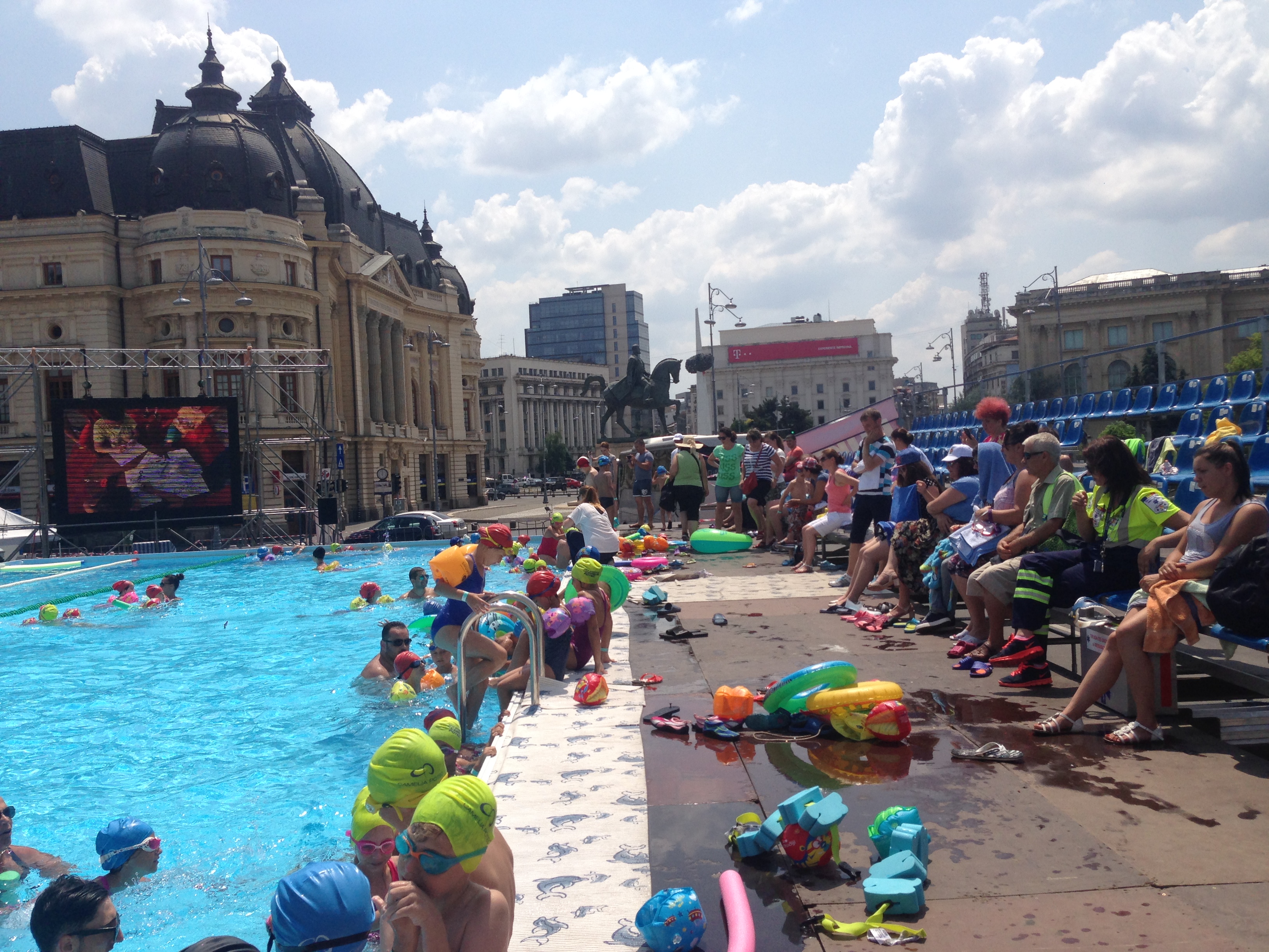 Timp de 9 zile, între 18 şi 26 iunie, în Piaţa George Enescu din Capitală a fost instalată o piscină de 20×10 m, cu adâncimea uniformă de 1,5 m. Ziua cursuri de înot pentru copii, activităţi acvatice, precum aqua fitness, aqua gym, aqua bike, aqua boxing, iar seara piscina a fost deschisă bucureştenilor dornici să înoate de plăcere. Acces gratuit, dar obligatoriu o adeverinţă medicală (apt de efort) şi un aviz epidemiologic.” (DETALII)