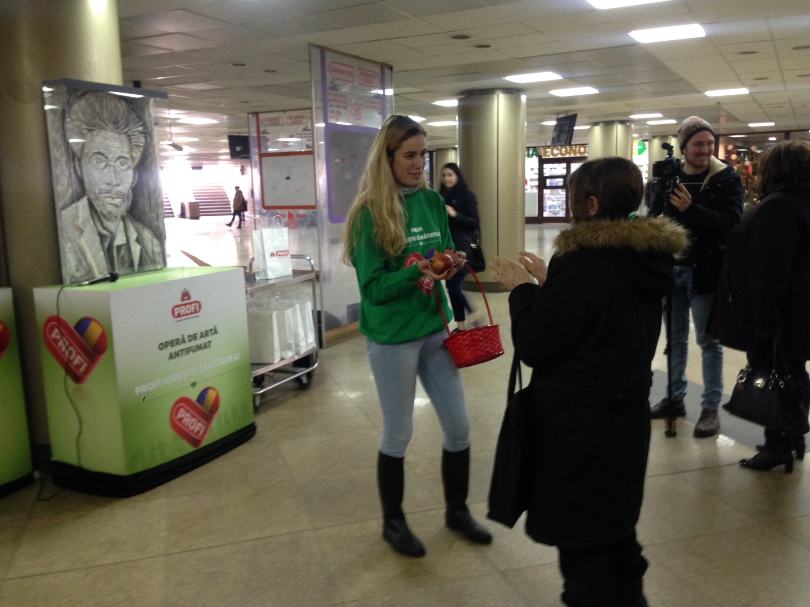 INSIDER: „Azi, în pasaj la Universitate, după o jumătate de oră, domișoara cu coșulețul cu mere de la Profi a reușit să convingă doar 3 fumători să renunțe la 1 țigară contra unui măr. Ori fumătorii bucureșteni ocolesc pasajul, deși nu e fumatul interzis, ori țigările sunt prea scumpe?!”