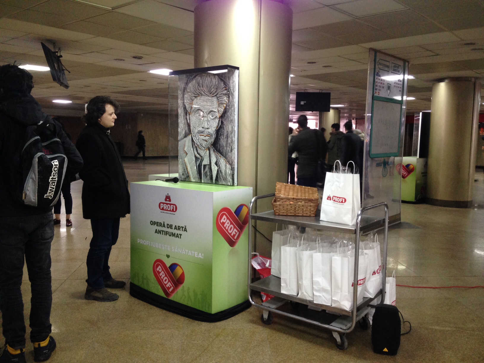 Expoziţia “De la nicotina la arta”, eveniment dedicat unei vieţi mai sănătoase, fără fumat, în cadrul programului “PROFI iubeşte sănătatea”. Tablourile expuse sunt lucrări de artă neconvenţională executate în tehnica mozaic, din ţigări colectate de la fumatori în 2016, când PROFI a lansat o invitaţie simplă şi atrăgătoare: schimba un obicei dăunator sănătaţii, cu un fruct, un măr. Autorul lucrărilor expuse este artistul plastic Iulian Emil Moldovan. DETALII
