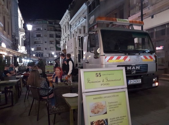 INSIDER: “Aseara, pe la ora 11, in centrul Bucurestiului. In timp ce stateam la masa la o terasa am primit vizita ROSAL. Cu multa gratie, masina de gunoi a parcat intre mese. Si „inginerii” de la ROSAL au inceput sa descarce tomberoanele pline. Au creat un moment inaltator, care imi confirma inca odata ca singurul complot in tara asta …suntem noi. Felicitari Primariei si prea icompetentei sale administratii. In frunte cu „Prima Tomberoana”.” (SURSA)