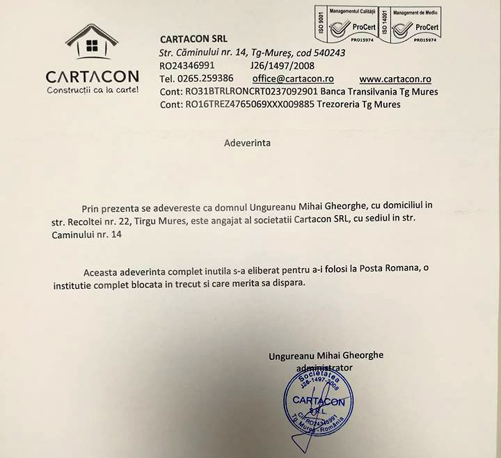 INSIDER: „La poștă nu vor să-mi elibereze coletul comandat fără adeverință de la locul de muncă, pentru că am pus livrarea la birou, nu la adresa de domiciliu. Le-am dus adeverința asta.” (SURSA)