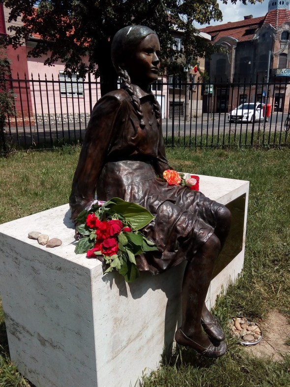INSIDER: „Eva Hayman. Nu treceți pe lângă ea ca și cum n-ar fi fost. Este statuia ridicată (de Organizația Tikvah Oradea) în memoria copiilor evrei din Oradea duși în lagăr și care nu s-au mai întors. Învățați-i pe copiii voștri ce înseamnă dragostea pentru celălalt, prietenia și toleranța, ca niciodată să nu se mai repete tragedia evreiască! Never Never Again!” SURSA