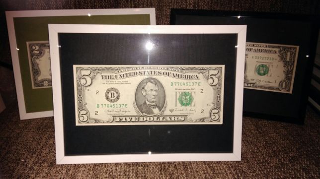 În arealul cadourilor corporatiste, la început, companiile își “ungeau” angajații cu tot felul de agende, calendare și pixuri personalizate, pe care aceștia le păstrau cu sfințenie și le priveau cu pioșenie. Apoi au urmat medaliile, diplomele, teambuilding-urile, abonamentele la Spa și uneori “prima de Crăciun”. Acum, cadourile lor devin tot mai rafinate, purtătoare de mesaje subtile, și le oferă angajaților tot felul de trăsnăi hand-made pentru minte și suflet, pline de simbolism și originalitate. Dintre toate cele posibile și imposibile, am găsit pe OLX cel mai criptic și mai insidios cadou posibil din ultimii 100 de ani – un mini tablou cu bancnote americane vechi înrămate! Nu știu dacă dolarii atârnați pe zid aduc spor în casă/firmă sau dacă anunță o nouă criză financiară, dar cu siguranță ne amintesc mereu că – “Fără bani, am fi cu toţii bogaţi” (Anonim). Oricum, în caz de nevoie, spargeți geamul!” (DETALII)