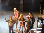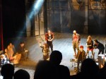 N-am rezistat mai mult de o oră, da’ chiar și aia a fost prea mult pentru mascarada asta stupidă, care cică se întindea pe trei ore. Zău dacă înțeleg, asta înseamnă teatru modern: să introduci aiurea un personaj ca Amy (Winehouse) care să cânte câte o piesă întreagă drept intermezzo între scene (ca să șochezi spiritele burgheze, of course), să faci din Ofelia o Lolită cam tâmpițică care mestecă gumă, iar pe Hamlet să-l pui să zdrăngăne la chitară Road to the Hell (sau ce-o fi zdrăngănit, o piesă rock oricum, au fost prea multe în playlist…) și să se joace cu o minge de baschet cu prietenii lui hipsterași și jmecheri?? Am plecat dinainte de pauză. Oare ce naiba urma în partea a doua, care se muta în sala de la subsol (alt artificiu inutil…) – probabil vreo fiesta interactivă?? vreun karaoke?” SURSA