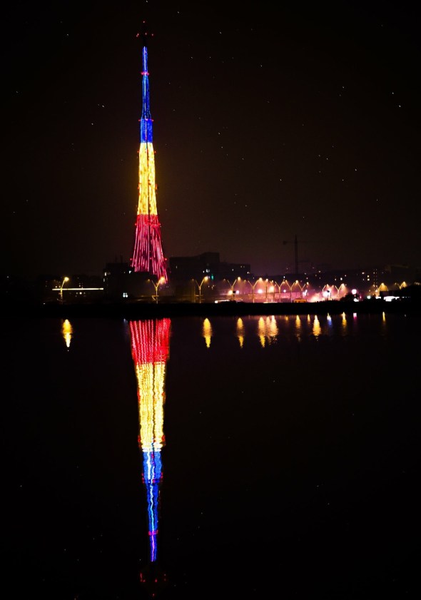 INSIDER: „O brad frumos şi imens! – La cei 210 metri înălţime (de 3 ori mai înalt decât hotelul Intercontinental) este cel mai înalt punct din Bucuresti, aşa că avem aici cel mai mare brad şi cel mai mare tricolor. E vorba de turnul de comunicaţii speciale.” (N.r.: Turnul de telecomunicaţii Ciurel) SURSA