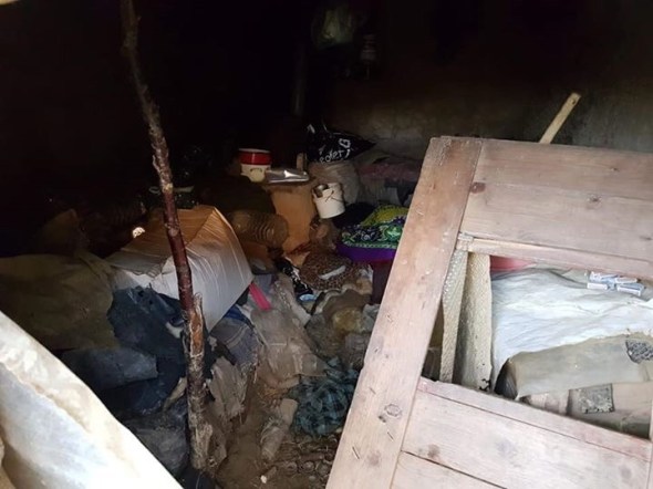 Privind acea imagine, surprinsă din unghiul respectiv nu aveai cum să-ți dai seama ce era de fapt acolo și nici ce se ascunde dedesubt. Faptul că într-o parte a foliei de plastic era și o prajină care o susținea într-un fel ca pe o terasă îți putea crea impresia că dedesubt ai fi putut adăposti câte ceva, dar nu lucruri de valoare intrucât „acoperișul” era atât de șubred și improvizat încât nu prezenta nici o siguranță sau protecție pentru „bunurile” de sub el. O a doua poză, făcută dintr-un alt unghi aduce mai multă „lumină” si descoperim că acolo există o ușa. Sau mai bine zis, un fel de ușa. E legată cu sârmă, în loc de sticlă are două bucăți de plastic care se chinuie zadarnic să acopere golul prin care se vede că înăuntru este intuneric beznaă, iar ca să intri nu poți dacă nu te apleci serios, urmând să rămâi așa gârbovit la propriu tot timpul șederii înăuntru. Acolo, primul lucru pe care-l vei putea vedea datorită razei de lumină pătrunsă prin ușa deschisă, va fi o altă prăjină destul de șubredă care are rolul de a susține „tavanul”. Apoi, o mulțime de obiecte de tot felul pungi de plastic, cartoane, sticle, flacoane, haine, oale, toate de-a valma, ne dezvaluie misterul : Acolo locuiește un om! De fapt, acolo locuia înainte. Primăria localității respective s-a autosesizat și pentru că nimeni nu știe nimic despre cei doi copii ai femeii paralizate au hotărât să o trimită la Dumbrava.