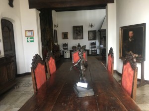 În muzeu găsim multe obiecte valoroase, achiziţionate de proprietar din Europa, unele datând chiar din secolul al XVII-lea, vitralii, tapiserii, covoare, statui sau obiecte de mobilier. Sala foarte înaltă, spaţioasă şi elegantă, impresionează de la prima vedere, în stânga se află biblioteca, păzită de doi lei sculptați, iar în dreapta o încăpere mai mică, unde se află o masă, cu o încrustaţie migăloasă, ferestrele luminoase sunt decorate cu vitralii colorate. Scara în spirală duce la etaj, unde se aflau camerele familiei Minovici, locuite până în anul 2004, când doamna Ligia Furnică-Minovici, soţia inginerului, a încetat din viaţă.