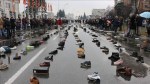 MACEDONIA, SCOPJE: În fața Primăriei oamenii aduc pantofii membrilor de familie care au părăsit țara în căutarea unei vieți mai bune