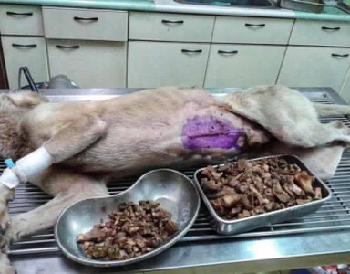 OCLUZIE: Așa arată 1,3 kg de oase scoase din stomacul unui cățel care “Nu primește niciodată oase!”