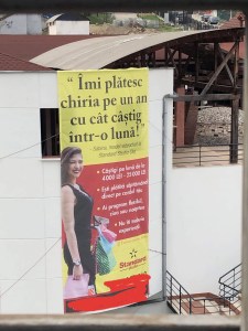 CLUJ: În fața bibliotecii Universității de Medicină și Farmacie un banner te învață cum să-ți plătești chiria!