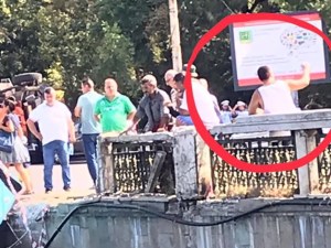 Pe pod sunt o grămadă de curioși care vor să vadă chiar ei Otokar-ul din râu.