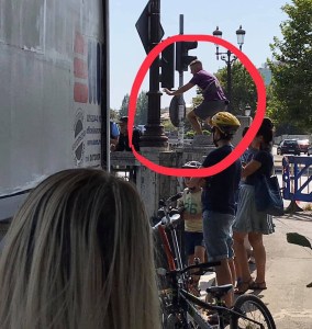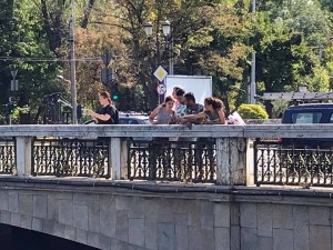 Unii își fac poze selfie-uri, alții își roagă prietenii să le facă poze pe fundalul autobuzului înecat. La un moment dat, un tânăr a urcat pe un stâlp și a întins mâna de parcă ținea autobuzul în mână. Poză clasică de nuntă.