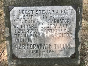 „Acest stejar a fost plantat la 16 Noiembrie 1961 cu ocazia sărbătoririi în țara noastră a centenarului nașterii marelui poet și gînditor indian RABINDRANATH TAGORE 1861-1941”