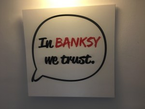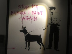 Banksy și-a lăsat amprenta în orașe pe aproape toate continentele. Bucăți de zid cu lucrări ale lui sunt azi smulse din spațiul public și vândute pe sume generoase, iar printurile și picturile lui și-au făcut loc la licitațiile de lux, pe care Banksy le deturnează în stilul lui clasic.