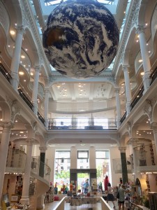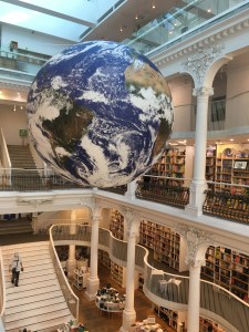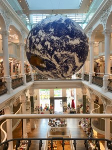 INSIDER: „Până pe 31 puteți să priviți Pământul, suspendat în spațiul central al librăriei Cărturești Carusel. Instalația spectaculoasă, The Earth creată de artistul britanic Luke Jerram, redă fidel globul pământesc, pe baza imaginilor incluse de NASA în catalogul Visible Earth. Globul expus în mijlocul Carusel are un diametru de 3,7 metri și este luminat din interior.