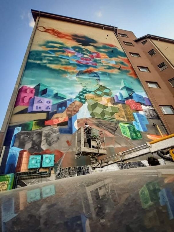 INSIDER: „În Bacău, pe un bloc lângă Insula de Agrement, s-a inaugurat astăzi o pictură murală care purifică aerul. Este realizată cu o vopsea specială, care transformă substanțele poluante din aer în substanțe inofensive care se depun pe pictură și care sunt spălate de ploaie.