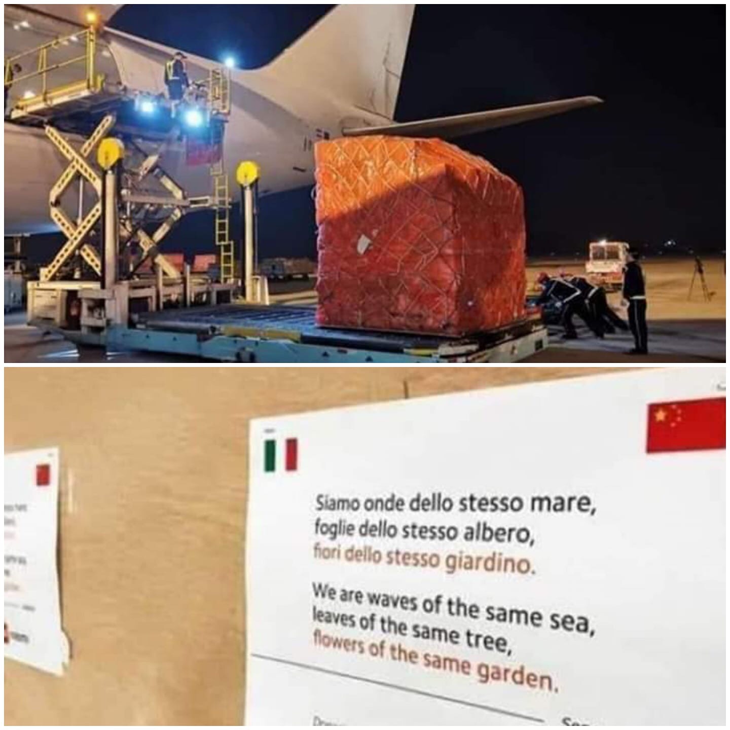 INSIDER: „Avionul cu materiale sanitare trimis de China pentru Italia! Pe cutie chinezii au scris (traduc) – ,,Suntem valuri ale aceleiași mări, frunze ale aceluiași copac, flori din aceeași grădină.” SURSA