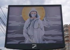 publicitare din Iași și București au apărut_aceste_imagini care amestecă marile religii ale lumii într-un soi de ecumenism combinat cu simboluri oculte numerologice. Observați pe aureole că există 13 protuberanțe, acest numar semnificând moartea, iar Shiva este zeul morții (Distrugatorul), echivalentul lui Satan personificat ca Moartea în cărțile de