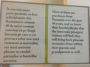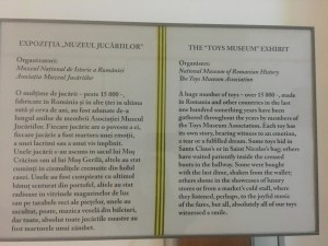 INSIDER: „Muzeul Jucăriilor este prezent până la sfârșitul anului într-o expoziție temporară în cadrul Muzeului Național de Istorie a României (Calea Victoriei nr.12, București). Peste 15 000 de jucării fabricate în România și în alte țări în ultima sută și ceva de ani, fiecare cu povestea ei își așteaptă cuminți (re)întâlnirea cu toate generațiile de copii în viață, cu bucuria și nostalgia amintirilor. Program_vizitare: miercuri-duminică, 10-18, luni și marți închis. Bilet intrare: 20 lei adult, 10 lei pensionari, 5 lei elevi, studenți, gratuit copii sub 7 ani.„
