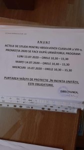 ȘCOALA GIMNAZIALĂ NR. 197: „Actele de studii pentru absolvenții claselor a VIII-a, promoția 2020 se face după următorul program (…)” SURSA