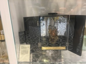 Cea mai veche sticlă de parfum expusă are aproape 200 de ani: Lubin – eau de toilette, din 1825. Originală. Parfumul a rămas intact în sticla lui mare de farmacie pentru că proprietarul inițial nu a putut să o deschidă. Nici măcar Gilles Lubin, actualul șef al mărcii franceze nu văzuse acest parfum până la vizita sa în România. Asta poate pentru că acum o sută de ani, România era a doua piață producătoare din Europa, după, bineînțeles, Franța. Era perioada strălucitoare interbelică în care Bucureștiul era Micul Paris, iar mărcile de parfumuri aveau fabrici aici; Coty, Guerlain, Lubin.