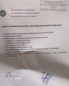 Conduită terapeutică în cazul unei suspiciuni de infecție SARS-COV2: