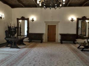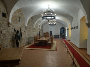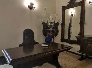 Turiștii_obosiți_sau_dornici de a intra mai bine în atmosferă le pot „încerca” o clipă (inclusiv tronul domnesc pentru un selfie!) fără a fi „urecheați” de supraveghetori așa cum se întâmplă de obicei în astfel de locații. Cei doi pești sculptați care apar ca laitmotiv pe toate piesele de mobilier reprezintă însemnul heraldic tradițional al zonei (fapt atestat de un sigiliu din anul 1413), simbolul fiind prezent și pe stema municipiul Făgăraș.