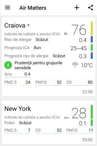 De observat indicatorul PM10 (particule microscopice de peste 10 microni): în Craiova avem parte de o cantitate de aproape cinci ori mai mare decât în New York.