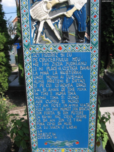 N.R.: Cimitirul Vessel este un cimitir din localitatea Săpânța, județul Maramureș, faimos pentru crucile mormintelor viu colorate şi picturile naive reprezentând scene din viața și ocupația persoanelor înhumate. Pe unele cruci există chiar și versuri în care sunt amintite, deseori cu nuanțe umoristice, persoanele respective. Ineditul acestui cimitir este diferențierea față de cultura populară care consideră moartea că un eveniment trist. A apărut ipoteza precum Stan Ian Pătraș s-ar fi inspirat din cultura dacilor care socoteau moartea ca un eveniment vesel.