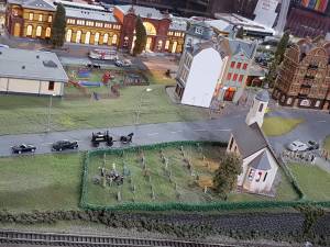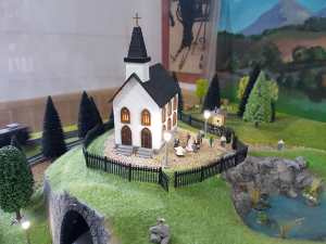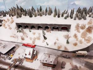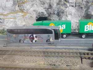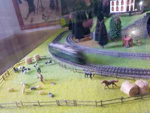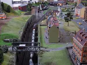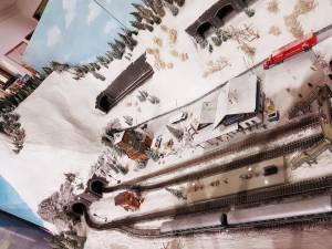 300 de metri de linie ferată într-un decor miniatural cu detalii uimitoare: depouri, tunele, viaducte, pasarele. Trenurile își fac loc printre arbori și munți, oameni care așteaptă cu valizele pe peron, schiori rostogoliți pe o pârtie, muncitori lucrând de zor, accidente de mașină pe străzi paralele, explozii, pompieri în acțiune, ambuscade, animale la păscut, semafoare, un patinoar, o nuntă, o înmormântare, Orientul Expres.
