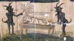 Este_cunoscută_ca „biserica cu draci” pentru numeroasele scene pictate în care elementul central este diavolul ce pedepsește păcătoșii. Rând pe rând, lenea, lăcomia, avortul, beția, desfrâul toate se regăsesc pe pereții pronaosului. SURSA