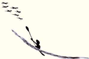 INSIDER: „Mai întâi am desenat silueta, apoi barca și vâsla; au urmat păsările, care, fără să vreau, fără să știu, fără să-mi dau seama la început, zburau în aceeași direcție. Și mi-am amintit de înțeleptul Wang-Fô: cum a pășit el în tablou, în paloarea amurgului, în marea de jad albastru.