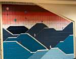 Peretele pe care vedem niște desene schematice, ca niște panouri de Ikea se numește: “Doorway”, de Ionela Mihaela Drăghici. Este vorba de o poartă către altă dimensiune pentru fiecare privitor. ”Artistul invită publicul să privească şi să se lase purtat de traseul creat de ritmul dintre linii şi pete, goluri şi plinuri. Parţialitatea intervenţiei pe peretele peronului are scopul de a păstra echilibrul între partea istorică a locului şi creaţia artistică, care vine să întregească şi nu să distrugă spaţiul dat.”