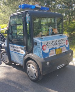 INSIDER: „Polițiștii locali din Craiova se deplasează în parcurile urbei și prin anumite zone pietonale cu ajutorul a cinci maşini electrice. Acestea au autonomie de aproximativ 120 de kilometri, prind o viteză de 50-60 de kilometri şi au două locuri. Ele sunt dotate cu aer condiţionat şi sirenă. Chiar dacă este puţin rigidă la interior, maşina se deplasează destul de repede. Dimensiunea mică îi ajută pe poliţiştii locali să o manevreze cu uşurinţă. Autovehiculul se conduce extrem de uşor şi are cutie de viteze automată. Prețul unui autovehicul 9500 euro.” DETALII