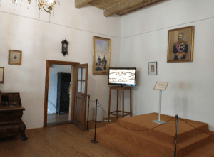 Intrarea în muzeu se face prin foişorul lui Tudor Vladimirescu. Se zice că revoluţionarul şi-ar fi petrecut aici ultimele zile, având tabăra de panduri instalată chiar la Goleşti. Printre personalităţile care au mai poposit la domeniul de la Goleşti, se numără: Constantin Brâncoveanu, Matei Basarab, Nicolae Bălcescu şi Carol I.
