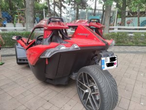 INSIDER: „Polaris Slingshot este o motocicletă cu trei roți. Prima ediție a modelului a fost introdusă în 2014 ca model 2015. Motor: 2,4 litri (2.384 cmc) GM Ecotec 14 (anii model 2015 până în 2019); Polaris ProStar 2,0 litri (1997 cmc) DOHC 14 (anii model actual 2020). Transmisie: Manual Aisin AR5 cu 5 trepte (toți anii de model); AutoDrive AMT cu 5 trepte (anil model actual 2020). Dimensiuni – Ampatament 2.6 m; Lungime: 3.8 m; Lăţime: 1.9 m; Înălţime: 1.3 m; Greutate redusă: 749 kg)