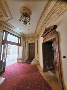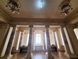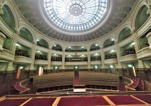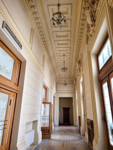 Rând pe rând, am descoperit mai multe comori aflate la vedere. Mai întâi, Sala ,,Europa Christiana” sau Sala ,,Pașilor Pierduți”, lucrată în marmură albă, apoi coridorul circular de unde se deschid uși spre amfiteatru. Un amfiteatru de 900 de locuri, 400 la parter și 500 în lojele aflate la etaj și mansardă. Accesul mi-a fost permis doar la parter, de unde am admirat cupola sălii, asemănătoare celei de la Ateneu, dar și arhitectura impresionantă.