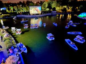 Dacă nu veți prinde o ambarcațiune, vă puteți relaxa la film pe pufi colorați, ce vor fi amplasați pe iarbă, alături de un ceai rece. ”Cinema sub Stele”, organizat de Primăria Sectorului 6, în parteneriat cu Lipton, va avea loc în perioada 19-28 august, între orele 21.00 și 23.30, însă doar de vineri până duminică cinematograful va fi pe apă. Apoi, se va muta la amfiteatrul din parc pentru următoarele șapte zile.