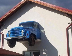REGHIN, JUDEȚUL MUREȘ: Camionul Bucegi a devenit decorațiune multifuncțională pentru case. Oare când e frig pornește motorul?!