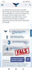 La vânzarea unui produs, primești banii doar prin firma de curierat, după ce cumpărătorul a intrat în posesia lui. Nu avem niciun sistem prin care cumpărătorii pot plăti online. Orice încercare de solicitare a datelor bancare printr-un link este o încercare de fraudă. Atacatorii pretind că sunt interesaţi de produsele pe care le vinzi şi îți transmit instrucțiuni false, folosindu-se de identitatea şi imaginea FAN Courier. Noi nu îți vom cere niciodată datele cardului şi datele personale prin website-uri terțe. Fii vigilent, ține-ţi datele personale în siguranță!” SURSA