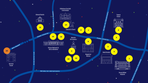Locaţia principală a Spotlight 2022 este Calea Victoriei, între Cercul Militar Naţional şi Ateneul Român. Între 14 şi 16 octombrie, în fiecare seară între orele 19.00 şi 23.00, traseul festivalului de pe Calea Victoriei este animat de personaje 3D, instalaţii interactive, proiecții de video mapping şi lucrări de VR.