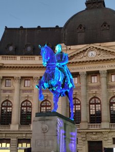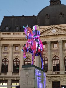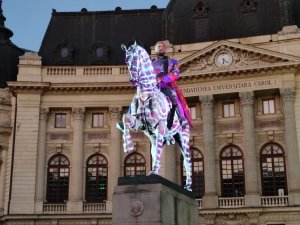 SPOTLIGHT 2022: Statuia ecvestră a lui Carol I din Piaţa Revoluţiei prinde viaţă printr-un spectacol de lumină şi culoare