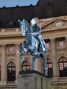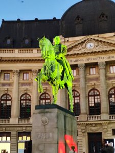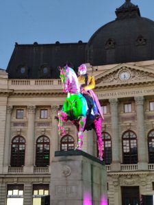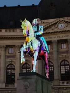 Statuia ecvestră a lui Carol I din Piaţa Revoluţiei prinde viaţă printr-un spectacol de lumină şi culoare creat de Les Ateliers Nomad în cadrul programului „Statui vii”, o campanie iniţiată de MONUMENT for, ce își propune să valorizeze monumente emblematice ale oraşului printr-o serie de reactivări artistice.”