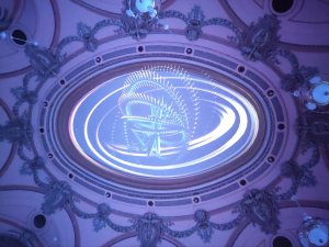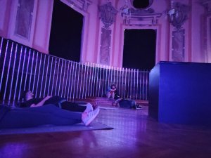Uncanny Museum, Aural Eye. Spaţiu Imersiv. Sala cu vitralii a Palatului Oscar Maugsch devine un spatiu imersiv al intalnirii cu o metaconştiinţă ce se hrăneşte cu percepțiite noastre fragmentats, in fata cărela nu putem opune rezistență.