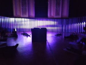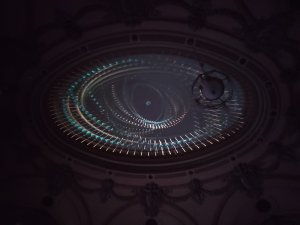 All Tomorrow’s Temples. Creat de Aural Eye, Silviu Stroe & Adilou. Aula Carol I, etaj 2. – Instalatie imersiva audio-video generativă în timp real. Aula se transformă într o orgă imersivă de sunet şi de lumină din variaţii algoritmice de note generate în timp real şi în continuă transformare. Instalatia transpune informatia dintr-un input video generativ într-o experienţă imersivă creată cu benzi LED, video-mapping şi sunet surround în care eşti invitat să te scufunzi.
