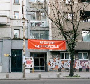 Intervenţie de artă contemporană autor Miklós Onucsan; titlu: ATENȚIE! CAD FRUNZELE – anul 2016, în cadrul proiectului de artă SPATIU EXPANDAT a împânzit oraşul cu plăci şi pancarte care ne atenționau că pică frunzele.”