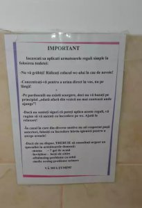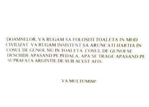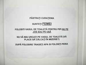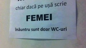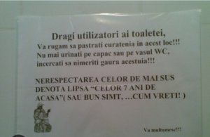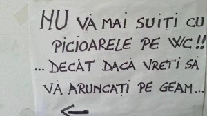 ROMÂNIA EDUCATĂ: „Sunteţi femei, folosiți vasul de toaletă pentru pipi, nu pe jos sau pe ușă! Înaintea clipelor de ușurare, asigură-te că apa curge!”