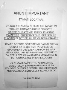 N.R.: „Pe stradă, în școli, facultăți, spitale, instituții de stat ori corporații și prin alte locuri publice, altele decât cele dotate cu wc in „fundul curții” se face o intensă campanie de învățare a folosirii toaletei- ăia învățați/ educați îi învață pe ăilalți.