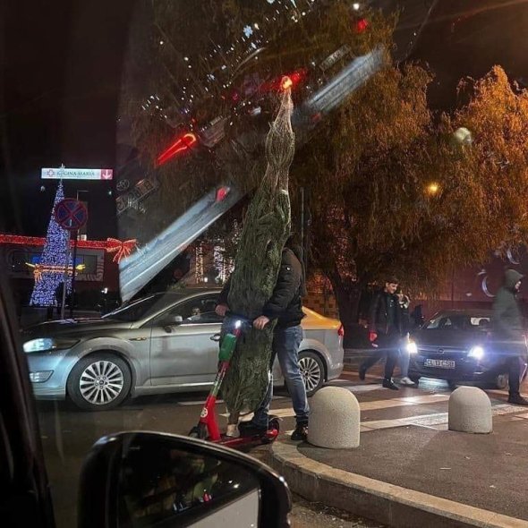 ARHIVĂ: BUCHAREST RELOADED: Moș Crăciun aduce bradul cu Lamborghini. Nici sania cea nouă nu prea are portbagaj! OXO NEXT LEVEL: Renii oltenești au mulți cai putere! OXO TRENDY: Bradul primit în dar nu se caută la dinţi. Zânei Măseluţă i-au căzut plombele! OXO MONUMENT DEGHIZAT: “Nu s-or supăra eroii de acolo, din ceruri, până se demontează bradul?!” OXO CIUREL: “Cel mai mare brad și cel mai mare tricolor din București!”
