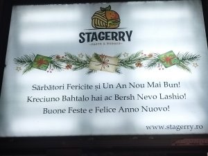 INSIDER: „La Craiova anul acesta au apărut în peisaj mai multe panouri stradale în care apar, în premieră absolută, și urări de Crăciun și de Anul Nou în țigănește. Cel din fotografie este în centru, în fața Universității. ‘Kreciuno Bahtalo hai ac Bersh Nevo Lashio!”